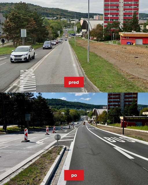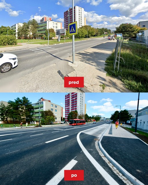 Ulica má byť po novom bezpečnejšia a komfortnejšia aj pre chodcov. Zrekonštruovali chodníky, položili tu už známu Bratislavskú dlažbu a pribudol aj nový priechod pre chodcov, nové kamenné obrubníky, prístrešok MHD (druhý bude doplnený v priebehu októbra), prídlažba a tiež stĺpy verejného osvetlenia.