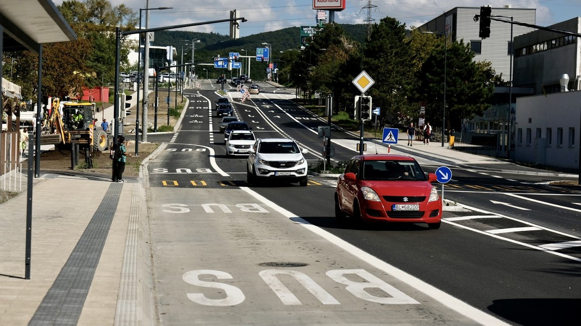 Ako sa zmenila Harmincova? Okrem pruhu pribudla dlažba, priechod pre chodcov, nové obrubníky či prístrešok MHD