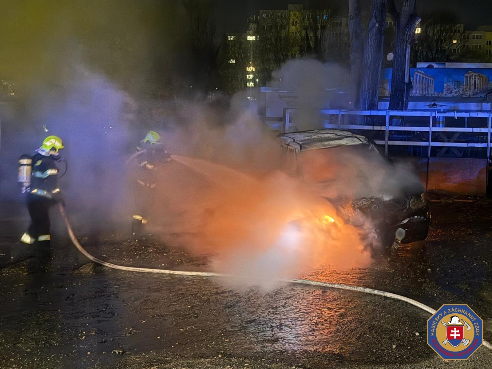 Nočný požiar na Starých Gruntoch: Auto zachvátili plamene, zasahovali hasiči