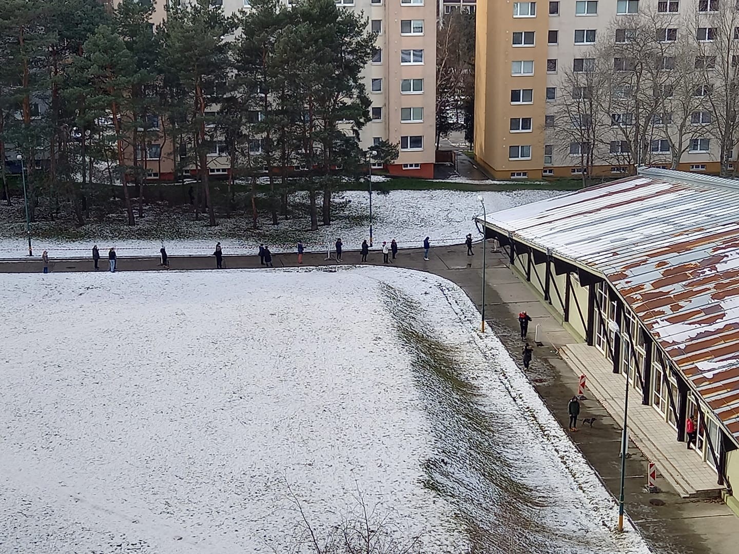 Mobilné odberové miesto v Športovej hale Na barine otvorili niekoľko dní pred Vianocami, ale najväčšiu záťaž zažíva práve v týchto dňoch, kedy na Slovensku prebieha celoplošný skríning. Ten už od jeho vyhlásenia sprevádzajú určité technické problémy, keď napríklad ešte v nedeľu padla internetová stránka, na ktorej sa záujemcovia o testovanie mohli zaregistrovať, aby získali termín na absolvovanie odberu. Nie každému sa to podarilo, takže v praxi to potom na väčšine MOM-iek vyzerá tak, že sa pri nich vytvárajú dva rady - v jednom stoja objednaní ľudia a v druhom tí, ktorí také šťastie nemali.