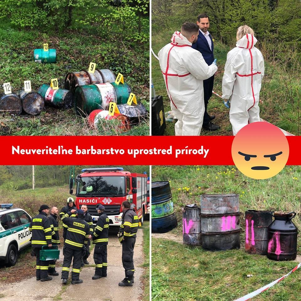 "Práve som sa vrátil zo Železnej studničky. Nejaký chrapúň tam do lesa vyhodil 16 veľkých sudov plných nebezpečného toxického odpadu. Na mieste bola envirokrimináka, špecializovaná jednotka hasičov, aj Inšpekcia životného prostredia. Podľa prvotného rozboru sa v sudoch nachádza odpad zo zatiaľ nešpecifikovaných ropných látok. Sudy aj s odpadom budú bezpečne odvezené a po detailnejšej analýze spolu s obsahom zlikvidované. Verím, že sa polícii podarí vypátrať pôvodcu tohto barbarstva a dostane exemplárny trest," napísal na sociálnu sieť starosta Nového Mesta Rudolf Kusý po túto fotografickú koláž: