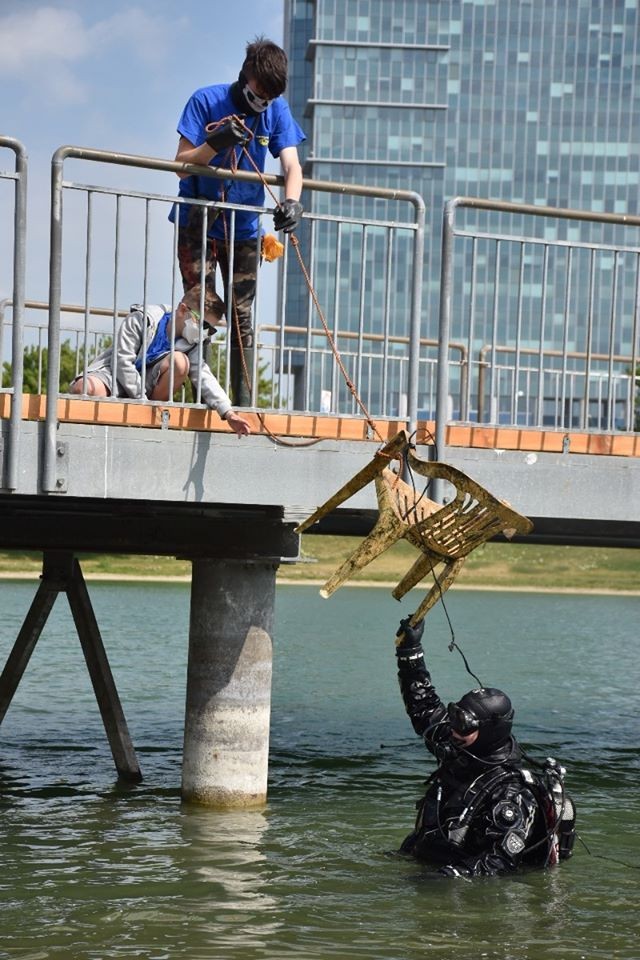 Pri povrchovom čistení vyzbierali predovšetkým plastové poháre a fľaše, sklenené poháre či drevené obloženie z rozpadajúcej sa reštaurácie. Na dne jazera sa odpad nachádzal najmä pod mólom a v jeho okolí. Nebezpečného, najmä kovového a často aj ulitníkmi pokrytého odpadu,