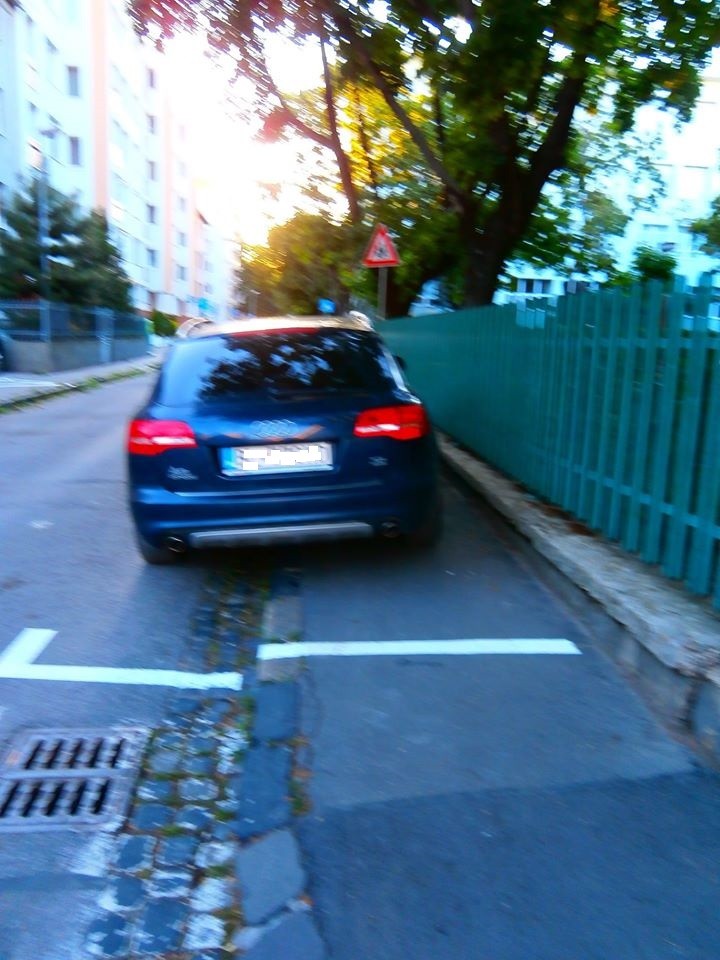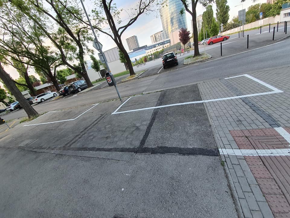 "Kresliči novej parkovacej politiky na Českej dostali úpal alebo to boli Pat a Mat? Takto vyzerá 1,5 metra pre chodcov - školákov?" napísala k fotke pani Lea.