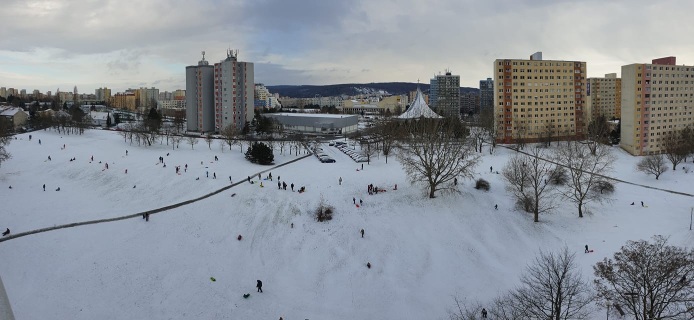 Vo veľkom sa dnes sánkovalo aj na kopčeku kúsok od nového kostola v Dúbravke: