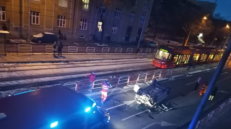Na Vajnorskej ulici v blízkosti zastávky električiek pri miestnom stredisku kultúry došlo v sobotu večer k hrozivo vyzerajúcej dopravnej nehode, po ktorej skončil osobný automobil prevrátený na streche. Vodičovi, sa podľa slov svedkov, našťastie nič vážneho nestalo...