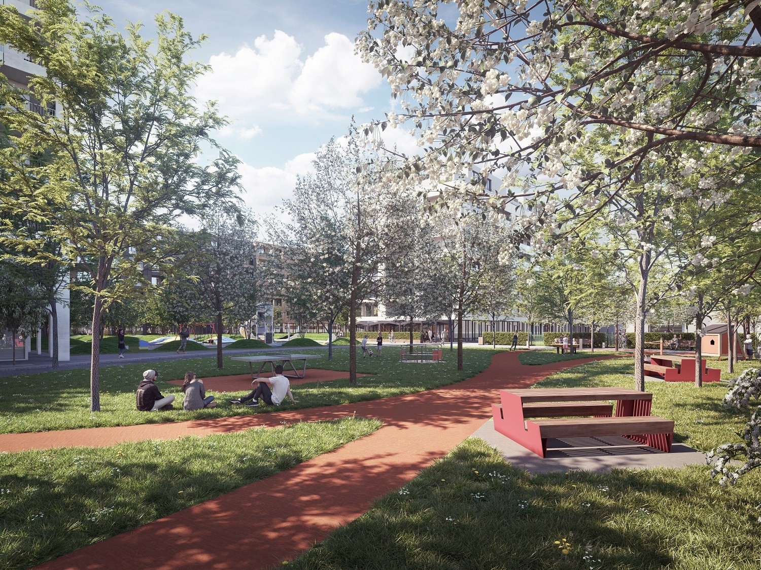 Bodku za ukončením výstavby nového obytného komplexu na Račianskej ulici v Bratislave dá nový park, ktorý investor pripravuje v spolupráci s mestskou časťou Nové Mesto.