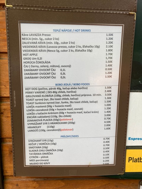 Klobása 100 g, chlieb, horčica, 3,50 €