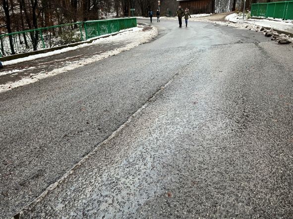 Všimli sme si, že na asfaltovej ceste, ktorá vedie smerom do lesoparku, sú veľké olejové škvrny. Tieto olejové mapy sme pozorovali na Ceste Mládeže približne v časti od Deviateho Mlyna a najviac ich bolo vedľa zastávky Železná studnička (lokalita Bufetu Železná studnička), kde sa cesta rozdvojuje do Kačínskej doliny. Aktuálne to bolo zrejme vidno preto, pretože bolo napršané, topil sa sneh a spolu to vytváralo na ceste kontrastné olejové kruhy. Týmto smerom jazdí aj linka autobusu MHD č. 43, ktorá vyráža z Patrónky a končí zastávkou Lesopark.