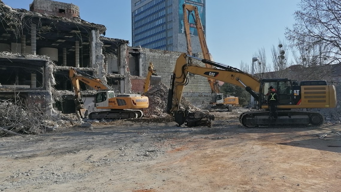 „V týchto dňoch sa vykonávajú práce na asanácii prednej časti Domu odborov a v interiéroch, postupne budú práce pokračovať na ďalších objektoch. Všeobecne pri asanačných prácach postupujeme veľmi opatrne a volíme technológie, ktoré sú šetrné k okoliu a berú ohľad aj na obyvateľov v susedstve. Podľa platného rozhodnutia o odstránení stavby dokončíme asanáciu týchto objektov do konca roka 2022," vyjadril sa pre banoviny.sk CEO spoločnosti Immocap Martin Šramko.