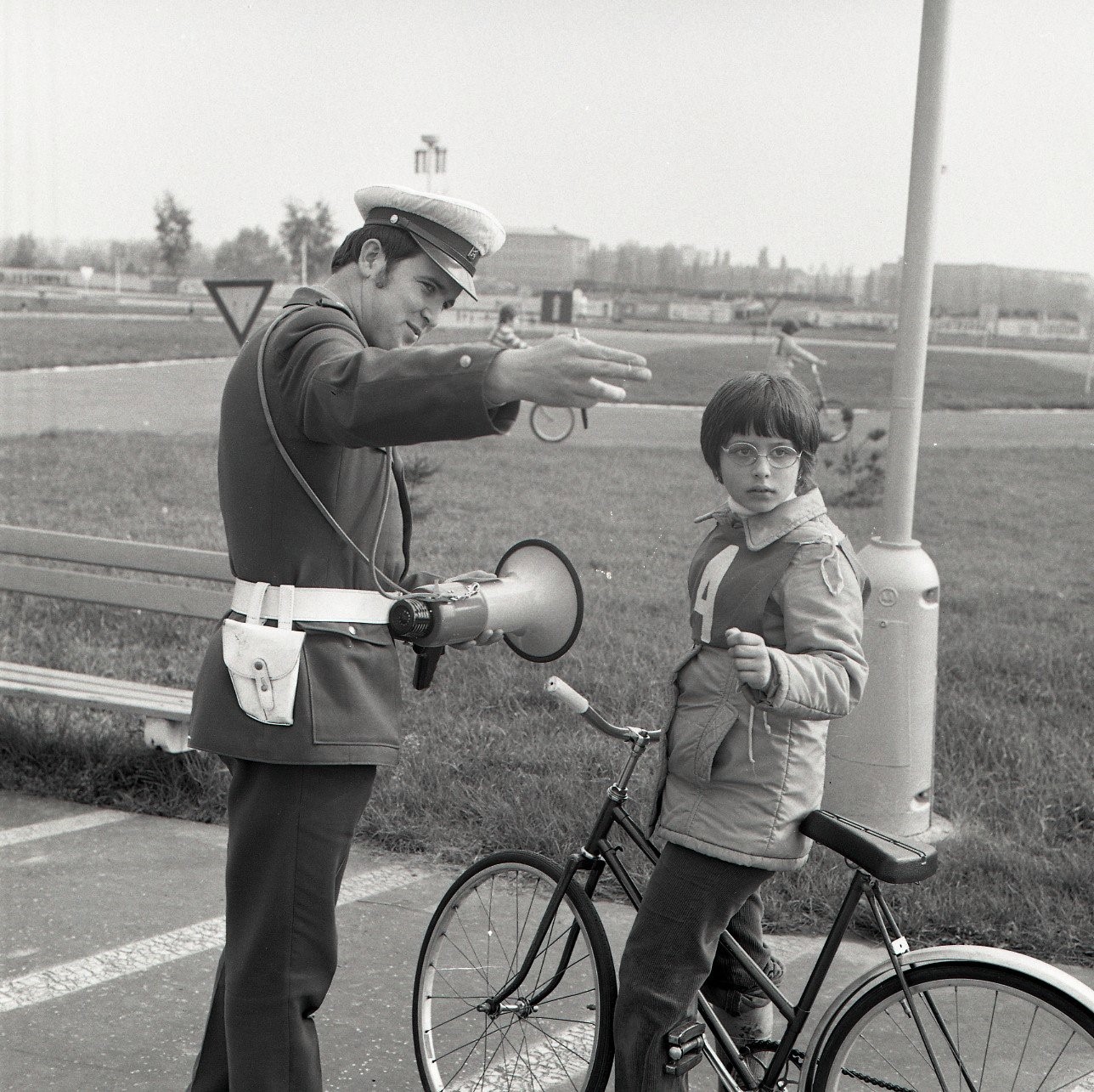 dopravný policajt a žiačka v roku 1978