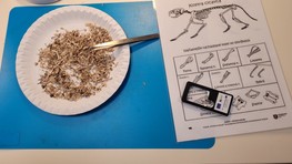 Obrovskému záujmu sa tešili napríklad "kostičky". Na stole máte k dispozícii kresby kostry malého cicavca, lupu a nádoby, v ktorých sa nachádzajú skutočné kostičky. Môžete medzi nimi ako mladí vedci hľadať jednotlivé časti kostry.