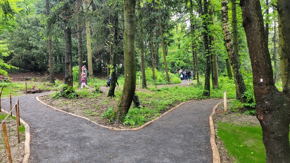 Najskôr sme sa prešli zrekonštruovaným arborétom, v ktorom nájdete mnoho druhov stromov, nechýba pri nich tabuľka s vysvetľujúcimi informáciami či mapka s oblasťami výskytu. V areáli sa nachádzajú aj zachované staré dreviny ešte z pôvodnej výsadby z konca 19. a začiatku 20. storočia. Nájdete tu napríklad cyprušteky, jedľu bielu, smrekovec opadavý, duglasku tisolistú či niekoľko krásnych starých tisov, mnoho tradičných listnatých stromov, veľkou raritou je napríklad borovica limbová či vzácna cryptomeria japonská. Ak sa tu práve nekonajú kurzy environmentálnej výchovy, areál arboréta je pre verejnosť prístupný cez víkend od 10:00 do 18:00 a počas pracovných dní od 13:00 do 18:00. Dnes tu návštevníci mohli absolvovať niekoľko komentovaných prehliadok.