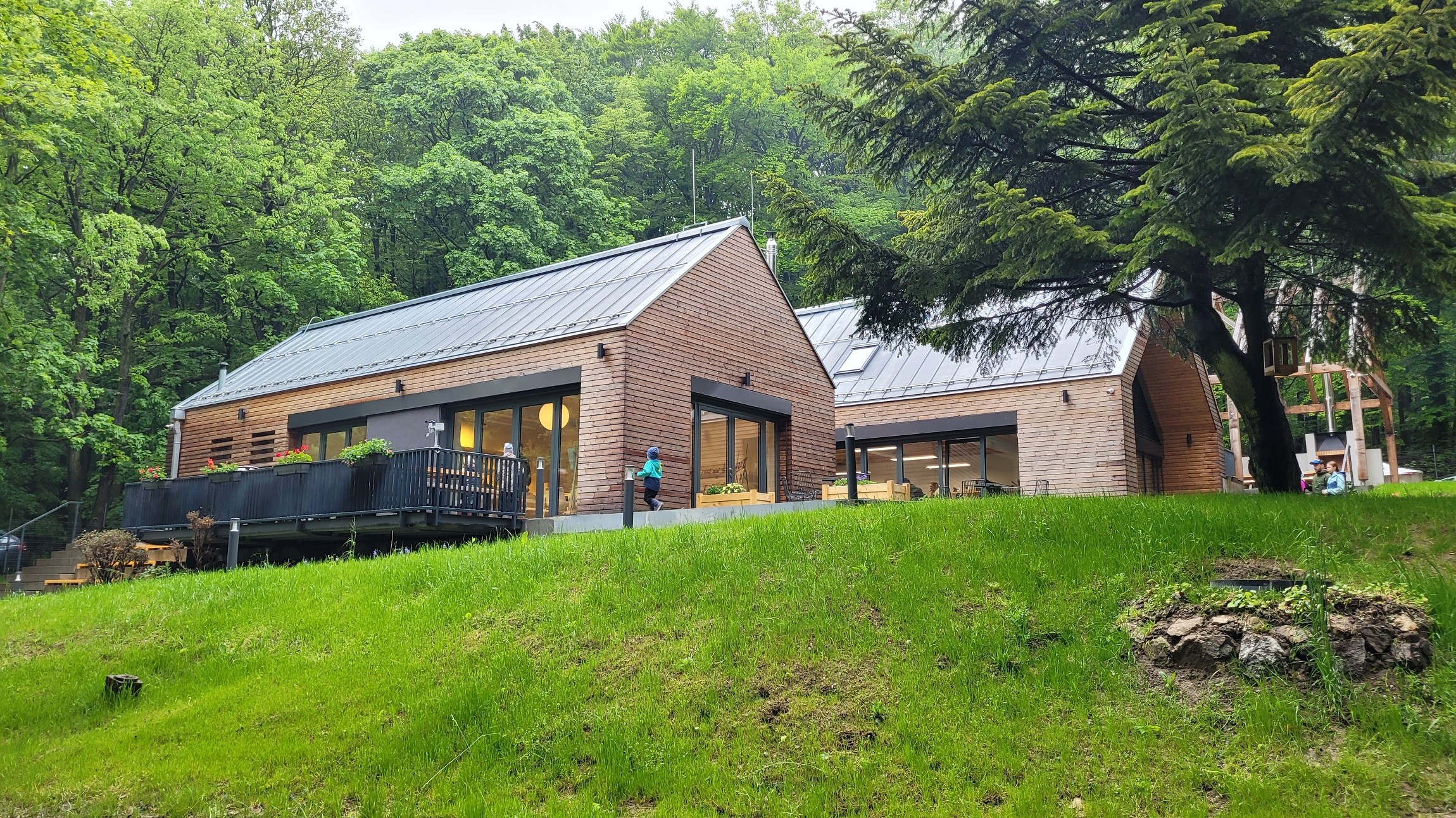 Hoci to v sobotu vyzeralo tak, že akýkoľvek výlet môže prekaziť dážď, ekocentrum bolo doslova nabité. Na samotnom Kamzíku sme vďaka počasiu veľa výletníkov nevideli, voľné miesta ste našli dokonca i na hornom parkovisku pod bufetmi, no ekocentrum pulzovalo životom. Zrejme takmer každý, kto sa vybral na Kolibu, zavítal aj sem.