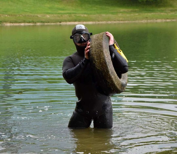 Potápači opäť čistili jazero Kuchajda, opäť nechýbali pneumatiky