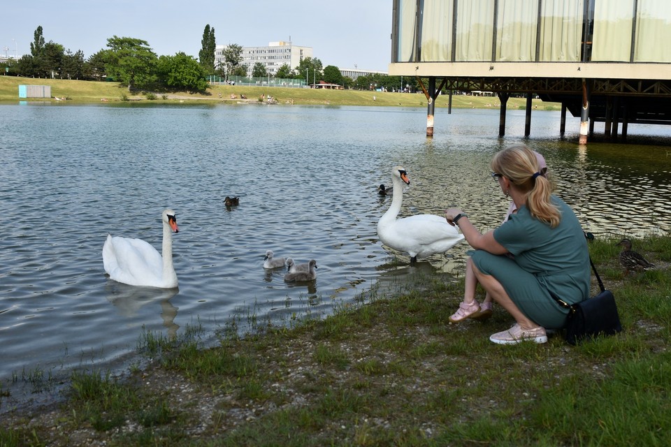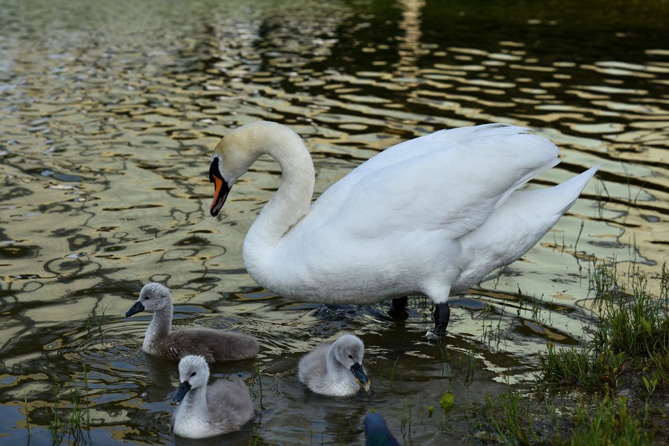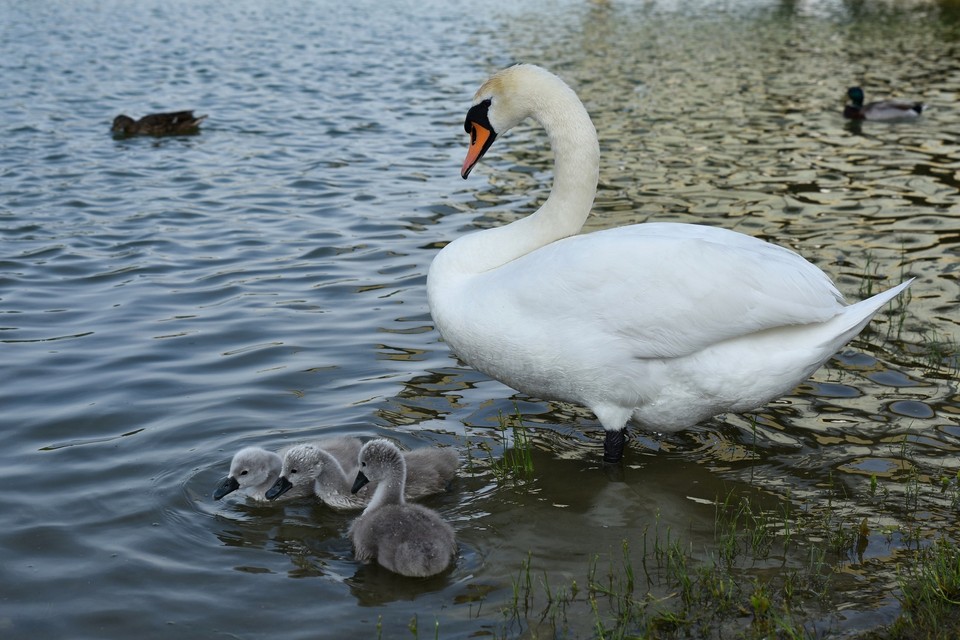 Labutí rodičia neustále dohliadajú na svojich najmenších zvedavcov, ktorí objavujú svoj vodný svet. Pri pravidelných prechádzkach dodržujte prevádzkový poriadok a nekŕmte ich pečivom. Okolitá príroda im poskytuje dostatok prirodzenej stravy.