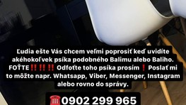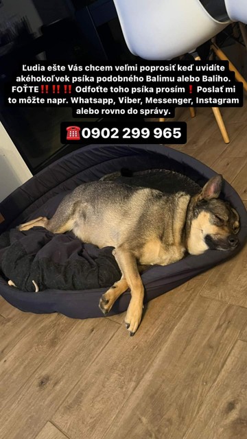 Bohužiaľ, psík sa 7. mája tohto roku stratil a to na mieste, ktoré nepozná. Rodina žije v Stupave, no musela odviezť syna do Tatier na liečenie a Baliho dali postrážiť mimo domov, odkiaľ však ušiel.