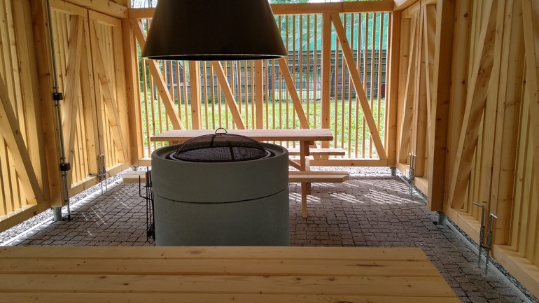 Do altánku sa zmestí dvadsať ľudí, vedľa sú však ďalšie dva A-sety na sedenie.