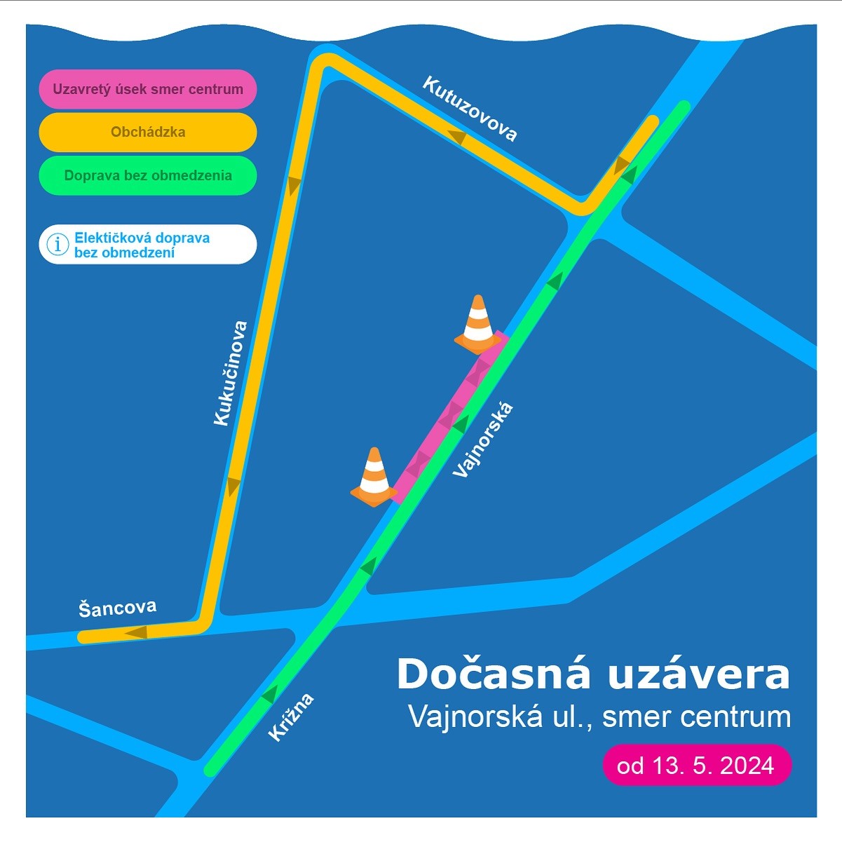 "V súvislosti s rekonštrukčnými prácami bude na danom úseku Vajnorskej ulice umiestnené dočasné dopravné značenie, ktoré vodičov presmeruje na alternatívne trasy. Prosíme všetkých vodičov, aby venovali zvýšenú pozornosť dopravnému značeniu a riadili sa vyznačenými obchádzkami," dodal Stračiak.