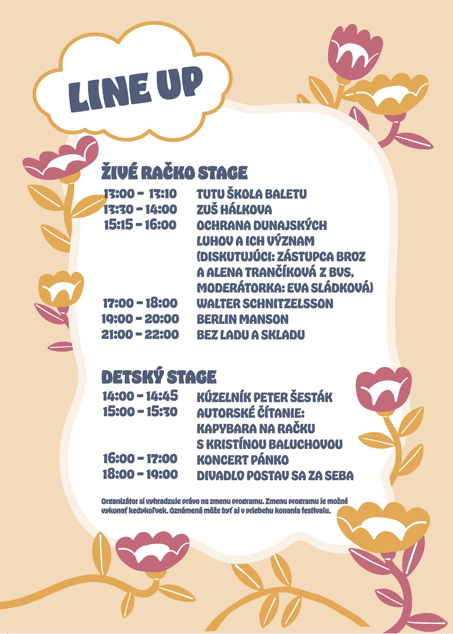 Návštevníci festivalu už dávno nie sú len zo susedstva, no jasne sa vyprofilovala najpočetnejšia skupina návštevníkov festivalu - rodiny s deťmi. Detská zóna dostala už v druhom ročníku vlastné pódium, kde program pre najmenších otvorí kúzelník Peter Šesták, a nasledovať bude tradične divadielko, tentokrát bábkové. “Veľmi sa teším, že deťom prinesieme mimoriadne úspešné predstavenie Postav sa za seba, ktoré dokáže vtiahnuť deti do deja a som presvedčená, že v nich zakorení hlavnú myšlienku - vedieť sa aj v neľahkej situácii postaviť za seba, aj za tých, ktorí to potrebujú,” hovorí Marianna Mašátová, spoluorganizátorka festivalu zodpovedná za detskú zónu, ktorá nás o festivale aj informovala. Program pre najmenších zavŕši koncert kapely Pánko, no popri dianí na pódiu nebudú chýbať bohaté sprievodné aktivity ako tombola, chodníček pre zdravé nôžky, kreatívna zóna, maľovanie na tvár a jedna novinka - mobilné planetárium. “V prenosnej nafukovacej kupole sa budú každých 20 minút premietať fantastické príbehy zo sveta vesmíru, podmorského sveta či prírody,” priblížila Mašátová.