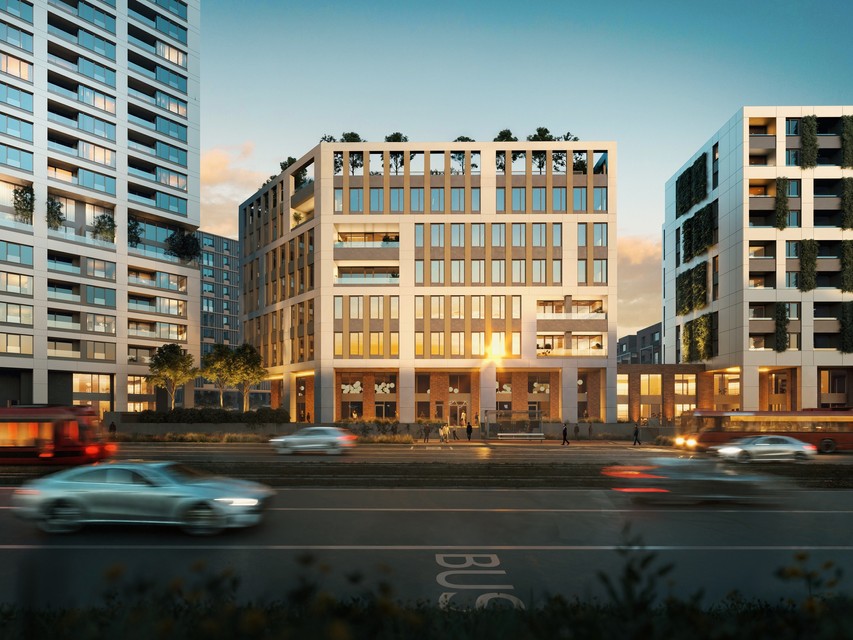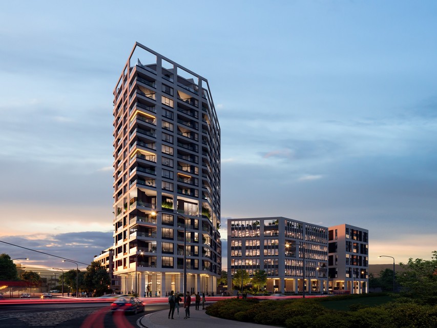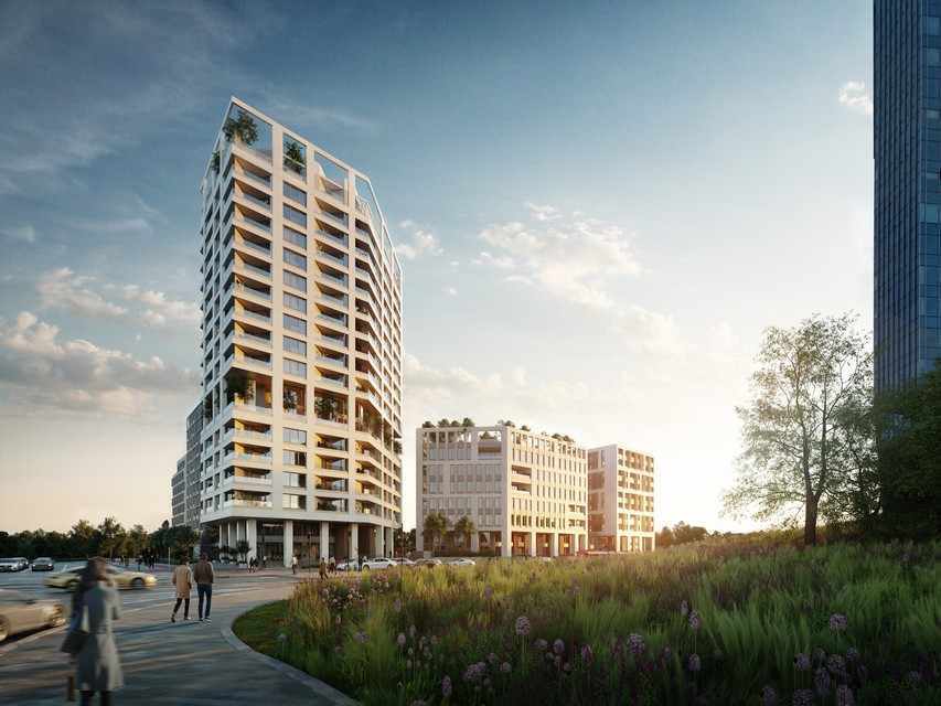 V roku 2028 bude dokončená prvá fáza, ktorá zahŕňa výškovú budovu s bytmi a nižšiu s kanceláriami.