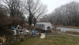 Celé to dopĺňa pohľad na dunajské rameno. Znie to ako opis bezdomoveckého sídla? Z vlastnej skúsenosti môžeme povedať, že obydlie viac pripomína malú záhradnú chatku. Títo ľudia bez domova si teda nakoniec svoj vlastný domov vytvorili sami.