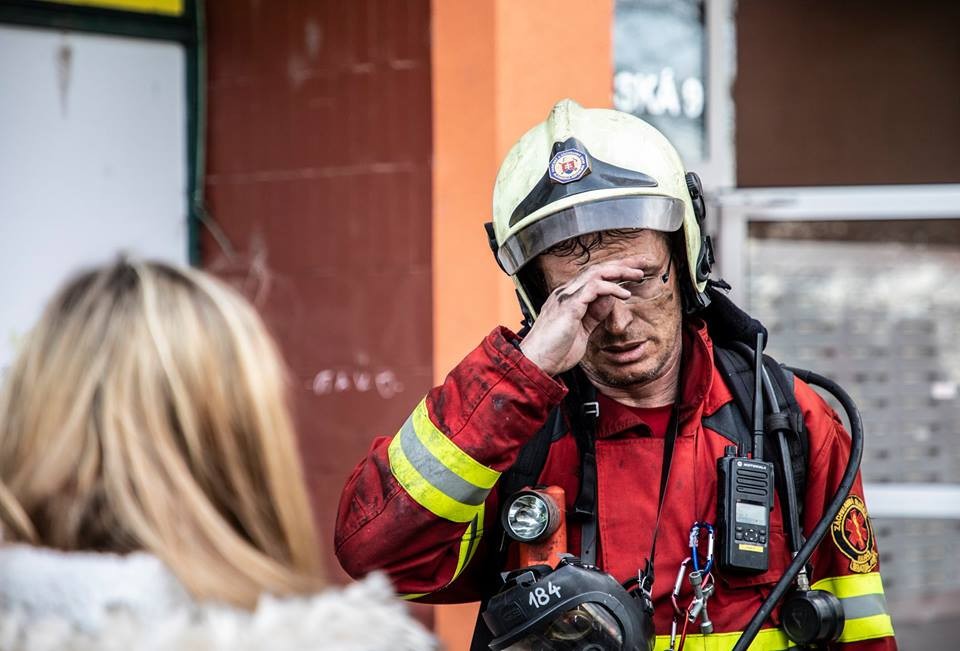 Jeden z hasičov bezprostredne po zásahu...