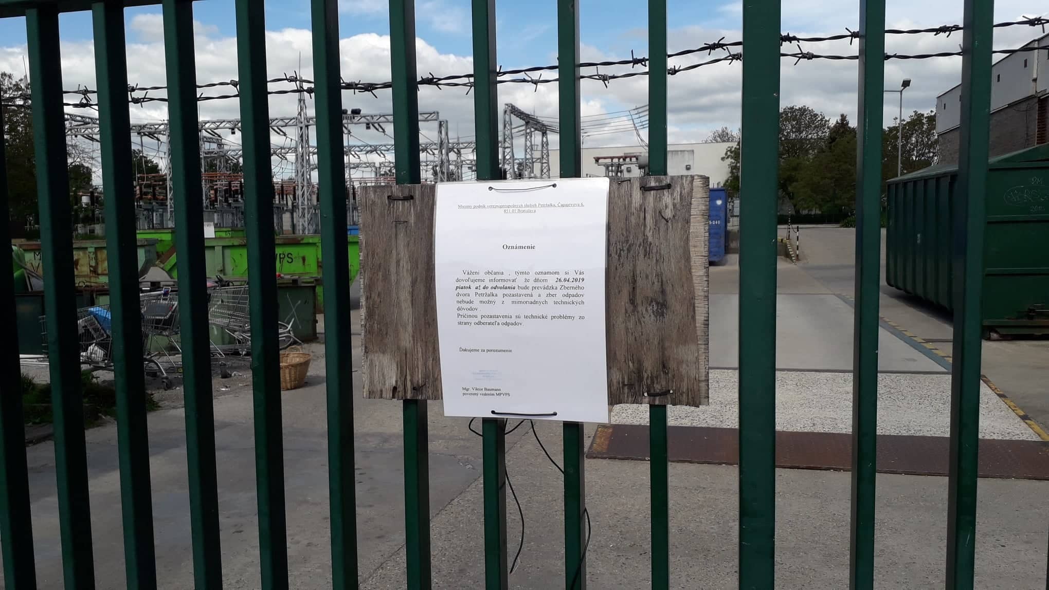 Petržalský zberný dvor včera zatvorili. Na jeho bráne visel oznam, že dvor bude od 26. apríla až do odvolania zatvorený. Príčinou pozastavenia jeho fungovania sú technické problémy zo strany odberateľa odpadu. Podľa našich informácií sa pred inými zbernými dvormi tvorili rady. Napríklad na Ivanskej sa čakalo niekoľko desiatok minút. Všetko komplikuje fakt, že bratislavská spaľovňa bola odstavená a na skládke v Zohori vypukol cez týždeň veľký požiar!