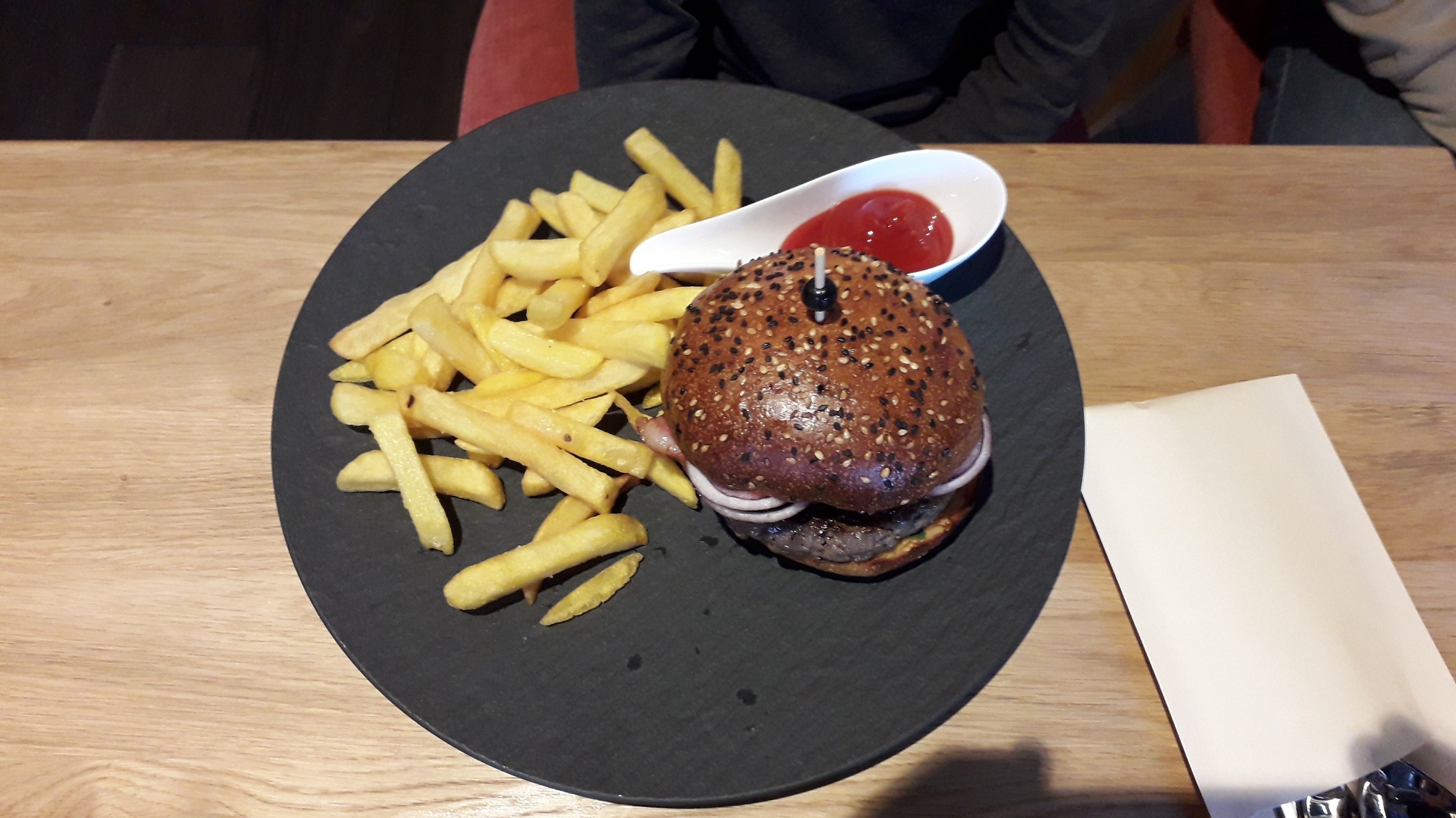 Meet Burger (10,90 €) z vyzretého mäsa sa podáva s kváskovou žemľou, remuládou, chrumkavou slaninou a hranolkami. Mohli sme si vybrať, ako veľmi chceme mať mäso prepečené, či medium alebo viac, zvolili sme druhú možnosť. Aj tento „fastfood“ bola výborná voľba, potvrdili sme si, že nie je burger ako burger.