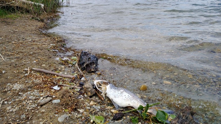 Uhynuté ryby na brehu Veľkého Draždiaka.
