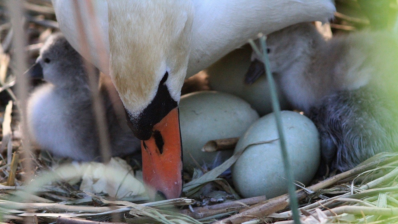 Ešte cez víkend dospelá labuť kontrolovala vajcia s budúcim potomstvom...