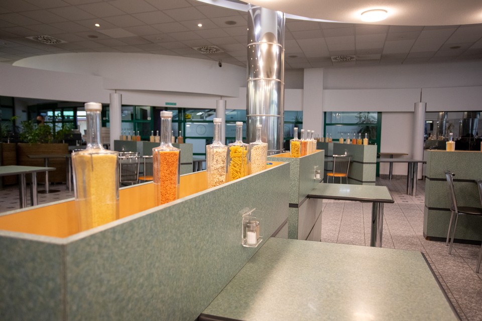 Jedáleň je otvorená od pondelka do piatku, od 11.00 h do 14.00 h. Ponúka štyri až päť obedových menu, plus ďalšie štyri sezónne jedlá à la carte. To znamená, že si zákazník môže objednať čerstvý wok alebo jedlo z pasta baru, ktoré mu za pár minút pripraví kuchár priamo pred očami.