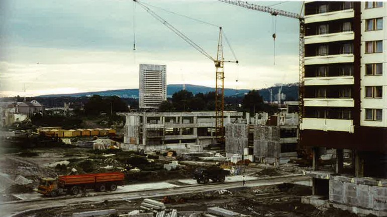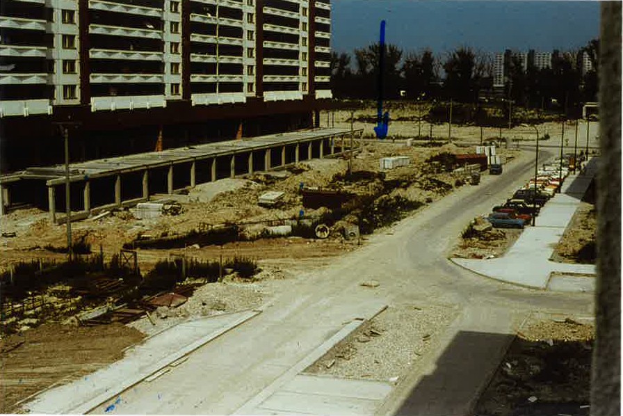Tvrdí, že ani po Nežnej revolúcii to nebolo v tejto oblasti oveľa lepšie. „Podnikateľom sa na terasách nedarilo. Prevádzky striedali majiteľov. A vidíte, dnes som rada, že tu žijem. Je to tá krajšia časť Petržalky, pre mňa ideálna lokalita,“ dodáva (Na úvodnej foto je západná časť výstavby Mánesovho námestia. V strednej časti záberu výstavba vysnívanej ZDŠ – Černyševského 8. Otvorená bola v septembri 1988, v pozadí výšková budovy Incheby. V popredí križovatka ulíc Farského a Černyševského).