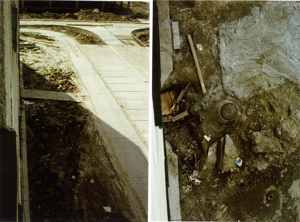 Pohľady z okna (vľavo): „Doskové vstupy do nášho domu už boli vymenené za betónové a mimo blatistých chodníkov sa začali črtať prvé náznaky cestných úsekov.“