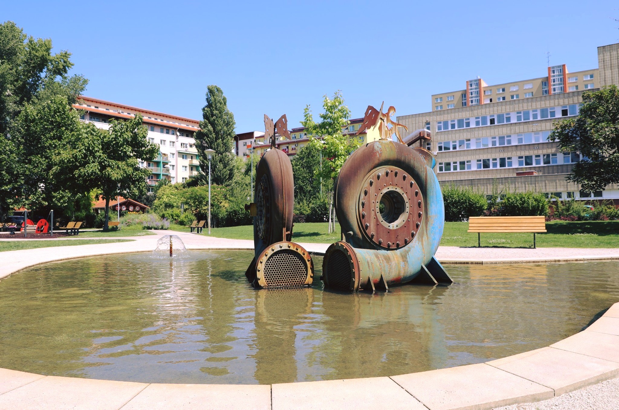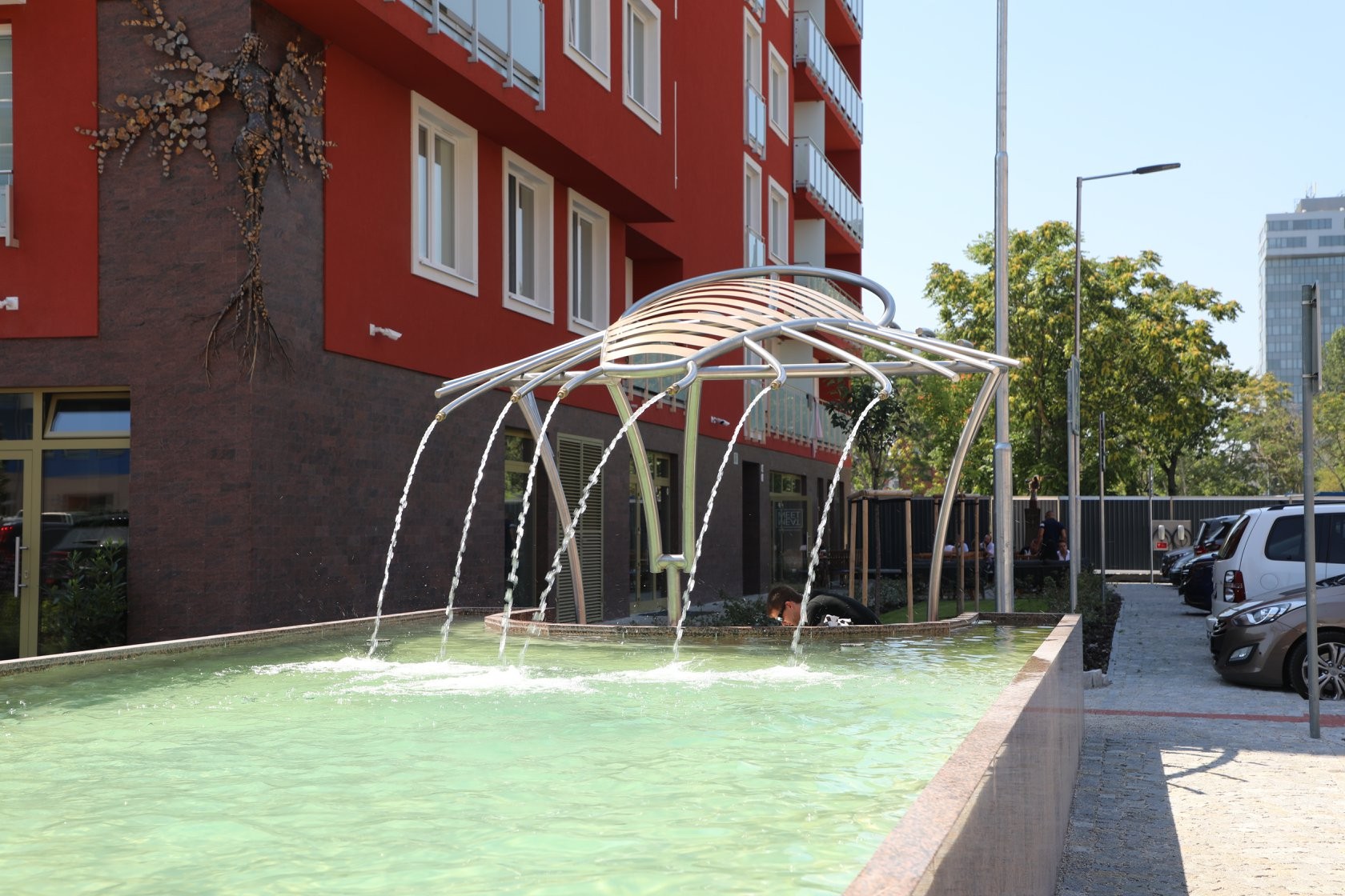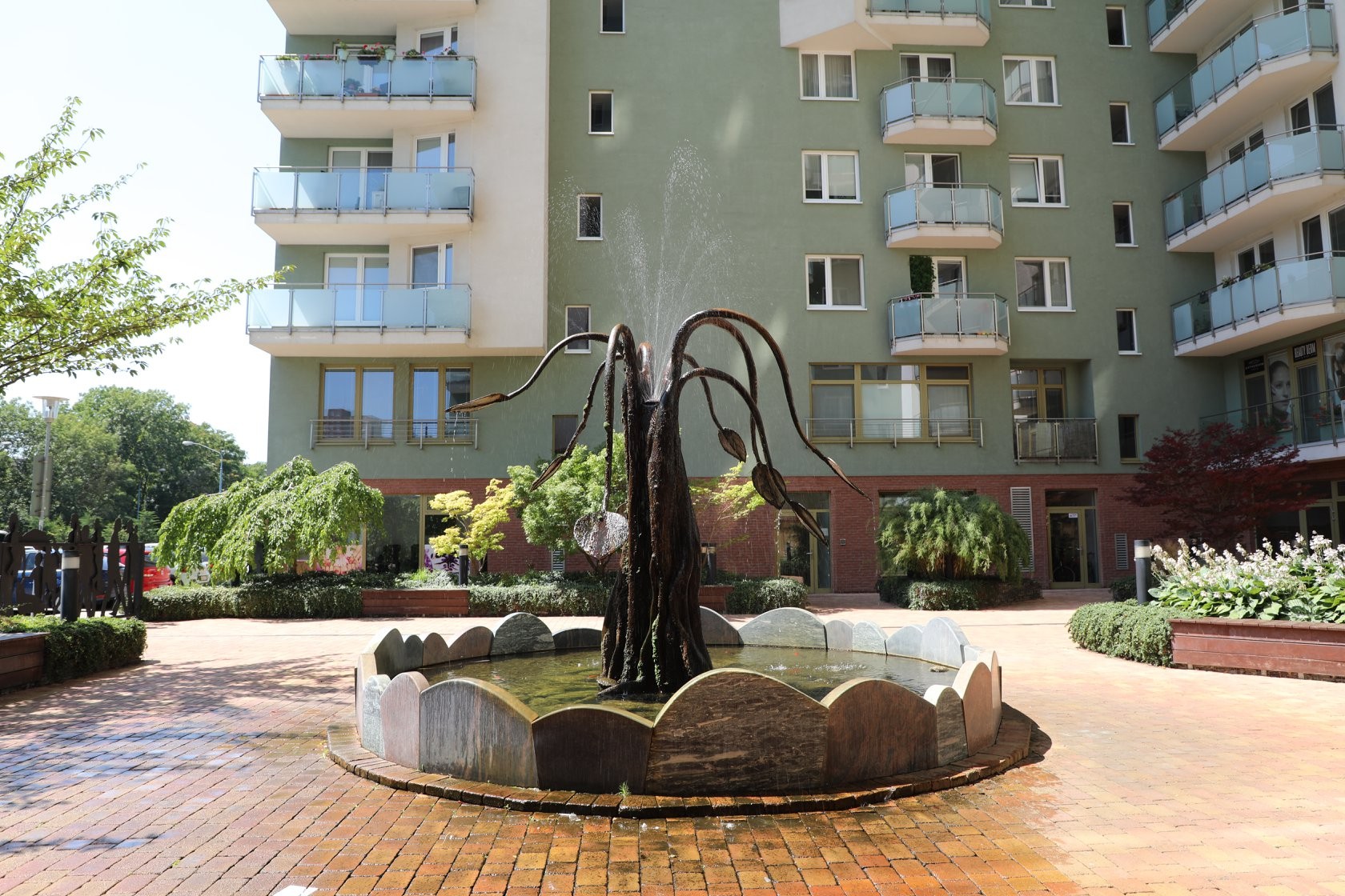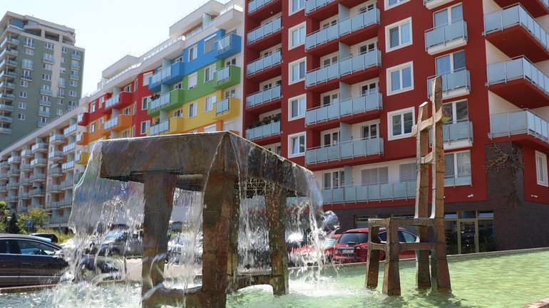 A tak sa Petržalčania vďaka jeho prístupu môžu tešiť z fontán aj jazierka, v ktorom plávajú ryby. Rovnakým spôsobom šperkuje aj okolitú zeleň a zelené strechy. Podobný prístup zvolili aj v Slnečniciach, kde sa obyvatelia takisto môžu schladiť pri svojej fontáne uprostred zelene.