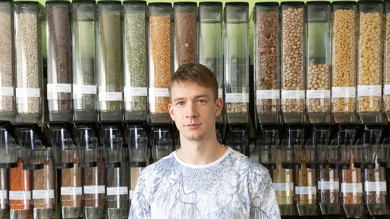 Milan Tomka (25) sníval o bezobalovom obchode už v čase, keď fungovali len v zahraničí. Po štúdiu ekonomiky a štatistiky sa preto zamestnal v nadnárodnej korporácii, aby si naň našetril. Otvoriť malý obchod, v ktorom aj sám predáva, sa napokon rozhodol v Petržalke.