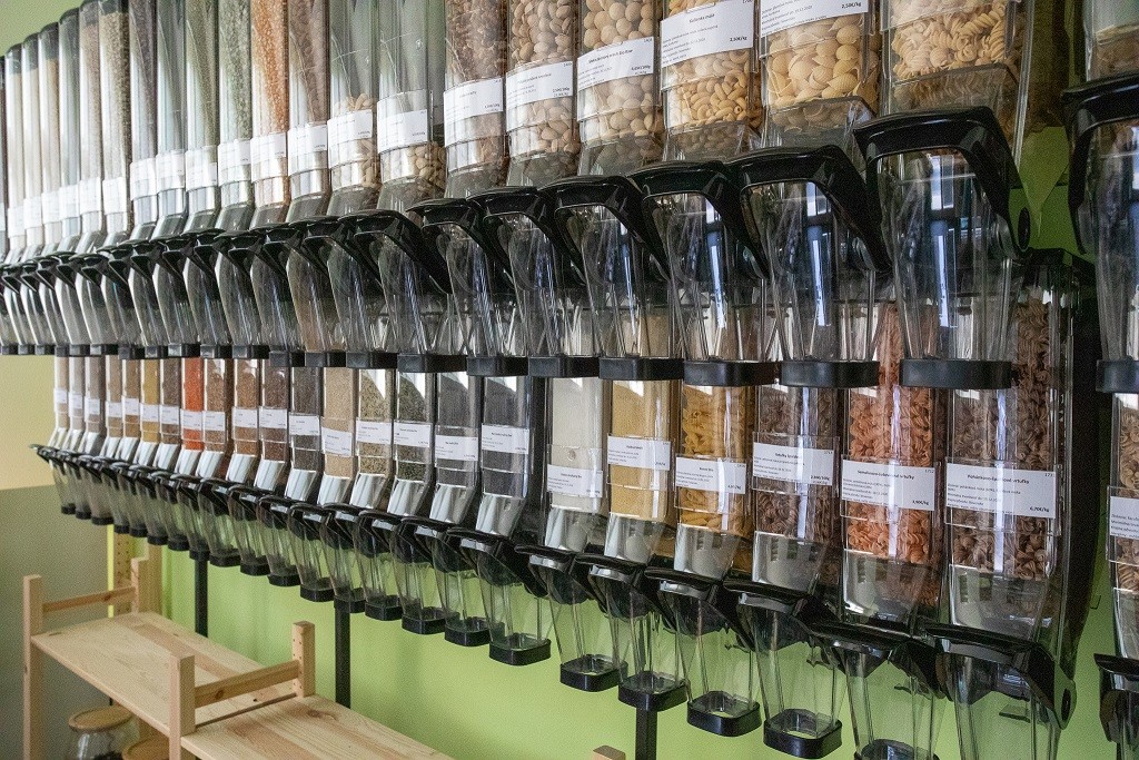 Prechádzam sa malým útulným priestorom, v ktorom sa obsluhujete sami. Do „vlastného skla“ si z dávkovačov nasypete strukoviny, orechy, ryžu, cestoviny, prací gél načapujete do nádoby, ktorá sa dá používať opakovane. „Výnimkou je múka, tú vám z vriec naberiem sám, nech neodchádzate so zaprášenými rukami a nákup netrvá zbytočne dlho. K dispozícii mám aj papierové vrecká alebo sklené poháre pre tých, ktorí si obal zabudli alebo prichádzajú po prvý raz,“ hovorí Milan Tomka.
