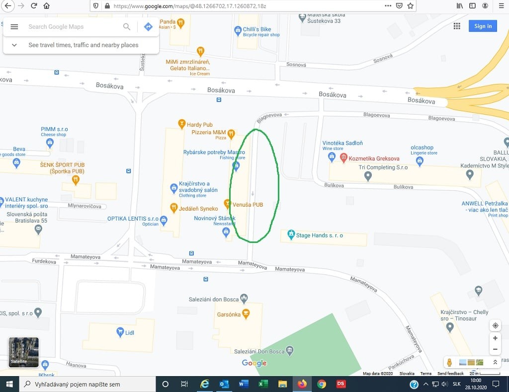Párok so žiltkou boli nájdené na parkovisku za panelákom na Šustekova 17-23, lokalita je vyznačená na mape