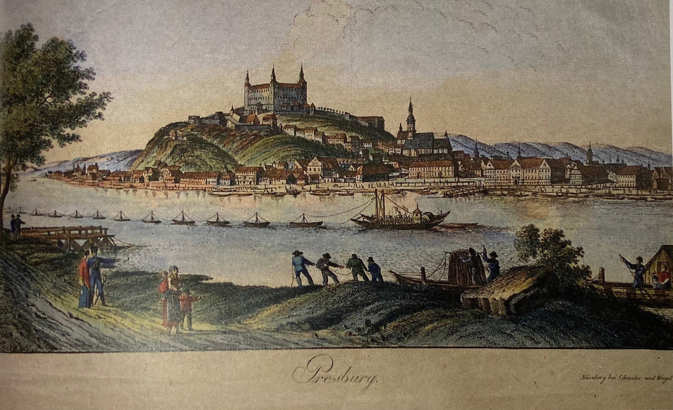 „Kým Dunaj nespútavali kamenné brehy, tiekol viacramenným riečiskom. Voda v ňom nebola ani taká hlboká ako dnes, keď už je len jeden prúd, a na niekoľkých miestach sa dalo prejsť - boli tam brody alebo prievozy,“ píše Ján Čomaj v knihe Petržalka Engerau-Ligetfalu. „Každou úpravou sa však hladina ramien i hlavného toku zvyšovala a pre možnosť prechodu bolo treba Dunaj premostiť.“