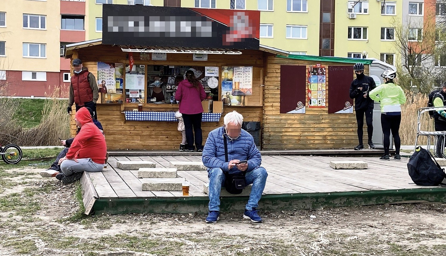 „Priamo z balkóna mám výhľad na krčmu, ktorá má zatemnené okná, ale dnu nenápadne vpúšťa ´svojich´ ľudí,“ hovorí mi známa. Nie je to ojedinelá skúsenosť. Nielen v Petržalke. Michal, ktorý prevádzkuje pub v nenápadnejšej časti Petržalky, doň, naopak, nepustí štamgastov ani na toaletu. Otvorené má len cez okienko. Napriek tomu mu stáli zákazníci zostali verní. Chodievali na jeseň, kým ešte bola otvorená terasa a chodievajú aj teraz, napriek zákazu vychádzania. „Nie je to len o pive. To by si mohli kúpiť a ísť domov. Lenže ľuďom chýba sociálny kontakt, dôchodcovia si k nám zvykli chodiť ráno na kávu, prečítať si noviny a prehodiť pár slov, a tak sa vracajú,“ hovorí. „Zastavia sa tu ľudia po prechádzke so psom, cyklisti po výlete...“ A tak v okolí jeho prevádzky vídať skupinky ľudí, ktorých počet sa s prichádzajúcim teplom zvyšuje. Nie každého to necháva chladným. „Nespokojní obyvatelia volajú na políciu, tá musí konať, a tak sme tu mali kontroly takmer každý deň,“ hovorí Michal.