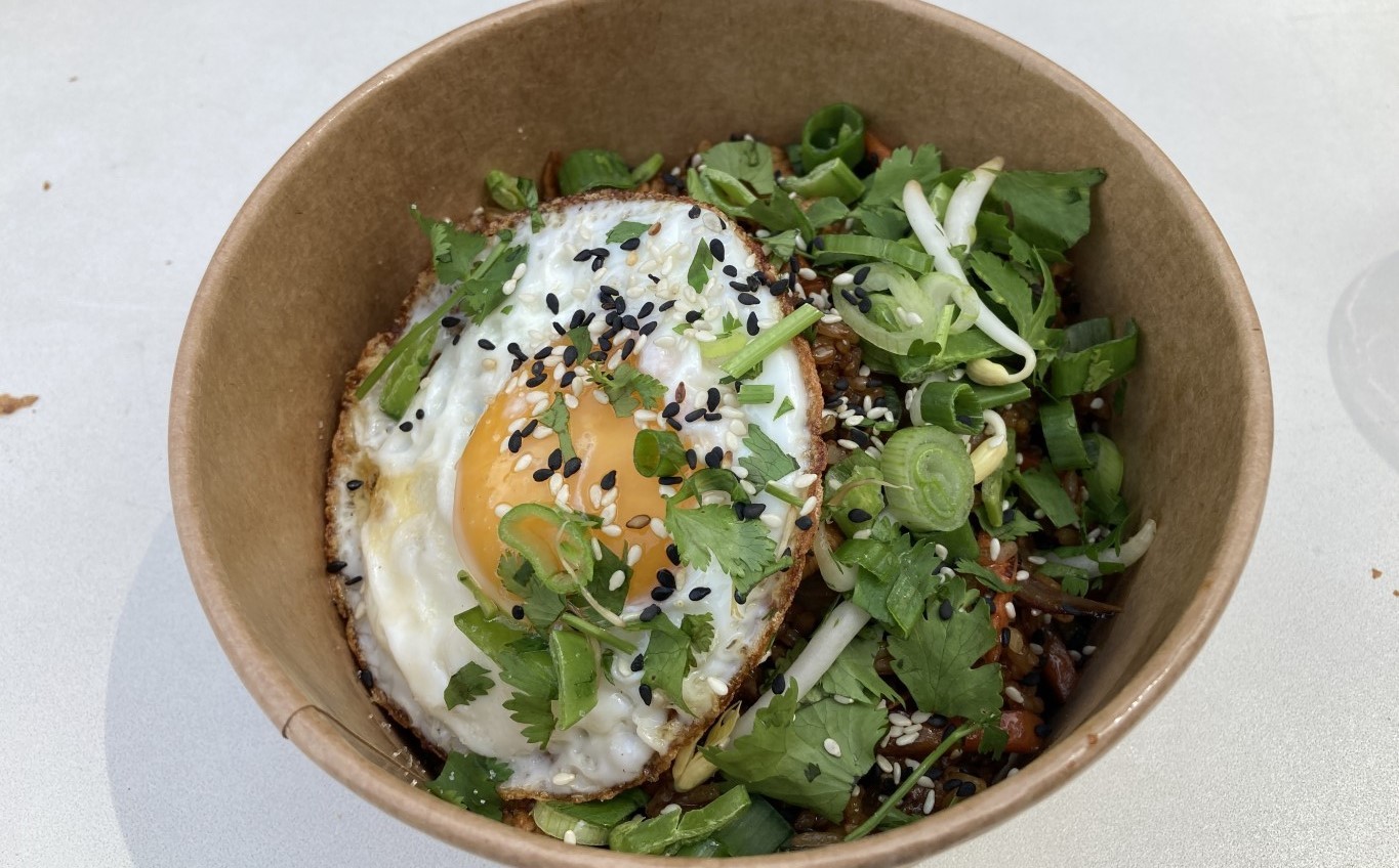 Zato porcia Nasi Goreng (7,99 €), čo je pražená ryža s volským okom, bola výdatná až tak, že sme mali problém skonzumovať ju celú. V porovnaní so 160-gramovou gyozou bola jej hmotnosť viac ako trikrát vyššia. Receptov na túto tradičnú indonézsku špecialitu je veľa a príprava vraj rýchla, ale netreba zbytočne experimentovať, doprajte si ju na Tyršáku. Dohneda sfarbená ryža spolu s kúskami kuracieho mäsa a rôznej zeleniny, dochutená sójovou omáčkou, bola šťavnatá a lahodná, miešali sa nám v nej viaceré exotické chute i vône, naozaj skvelé a ľahké jedlo.