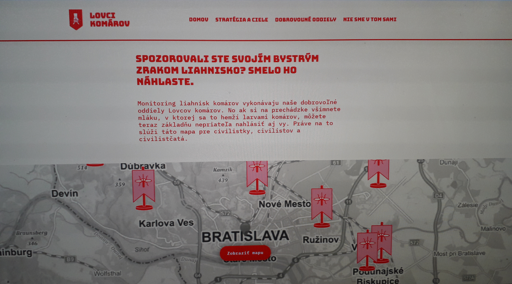 „Na stránke www.lovcikomarov.sk sa nachádza mapa pre verejnosť, ktorá slúži na zaznamenanie potenciálne rizikových lokalít obyvateľkami a obyvateľmi - tieto lokality následne skontrolujú naši školení “lovci” a “lovkyne”,“ informovala nás hovorkyňa magistrátu Katarína Rajčanová. Do mapy, ktorú využívajú na monitoring dobrovoľníci, tak pribúdajú aj takéto lokality.