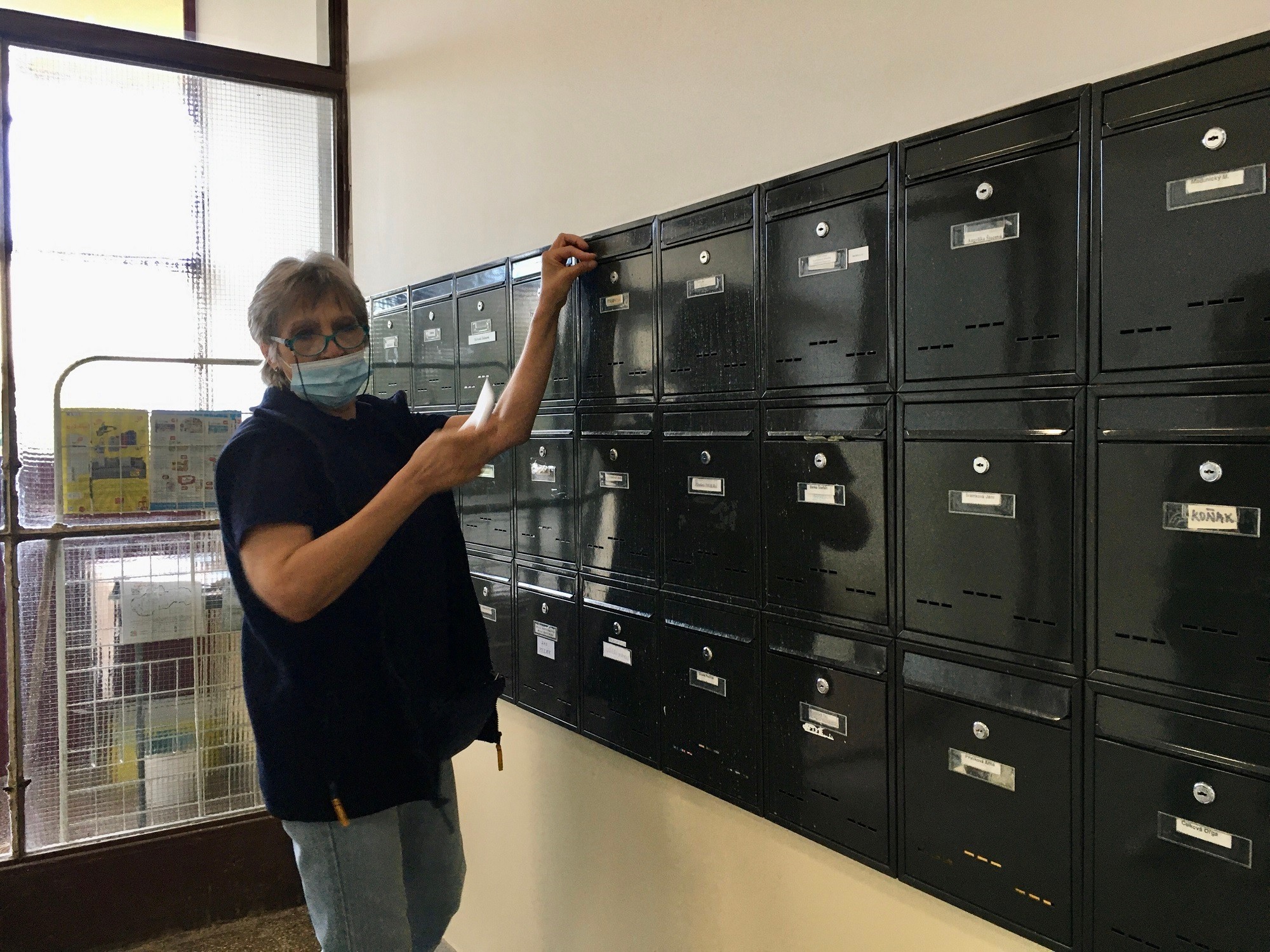 Prichádzame na Krásnohorskú, Jitka vytiahne zväzok čipov od všetkých brán, nájde ten správny a už je pri schránkach. Mená na nich ani nesleduje, ide po pamäti. Nosí v hlave 1 200 bytov! Nielen ich schránky, dokonca aj dvere. „Keď si ich dá niekto vymeniť, pozerám, či som na správnom poschodí,“ smeje sa.