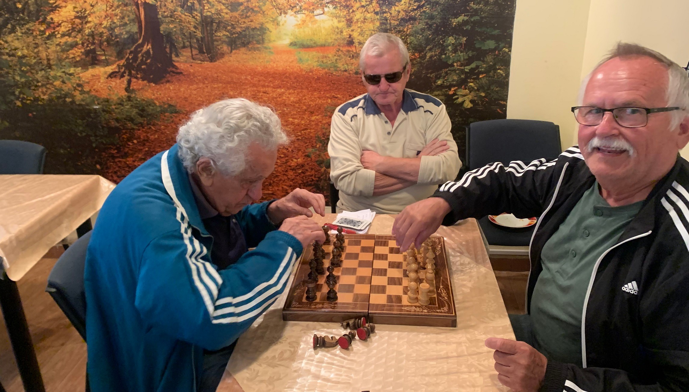 Pri malom stolíku sedia traja páni a hrajú sedmu. Po chvíli vytiahnu šach a Ružena Borzová ukazuje na pána Stanka, ktorý má 90, ale šancu v šachu by som proti nemu nemala. Druhý šachista, pán Mirko, chodieva do klubu aj s manželkou Evičkou. Obaja vraj radi naučia hrať šach každého, kto má záujem. Neďaleko sedí pani Anka, ktorá bola 41 rokov vizážistkou v SND a líčila hádam všetky herecké hviezdy. A hneď vedľa nej pani Vierka –niekdajšia vrchná sestra na chirurgii na Kramároch. Čo človek, to príbeh na knihu...