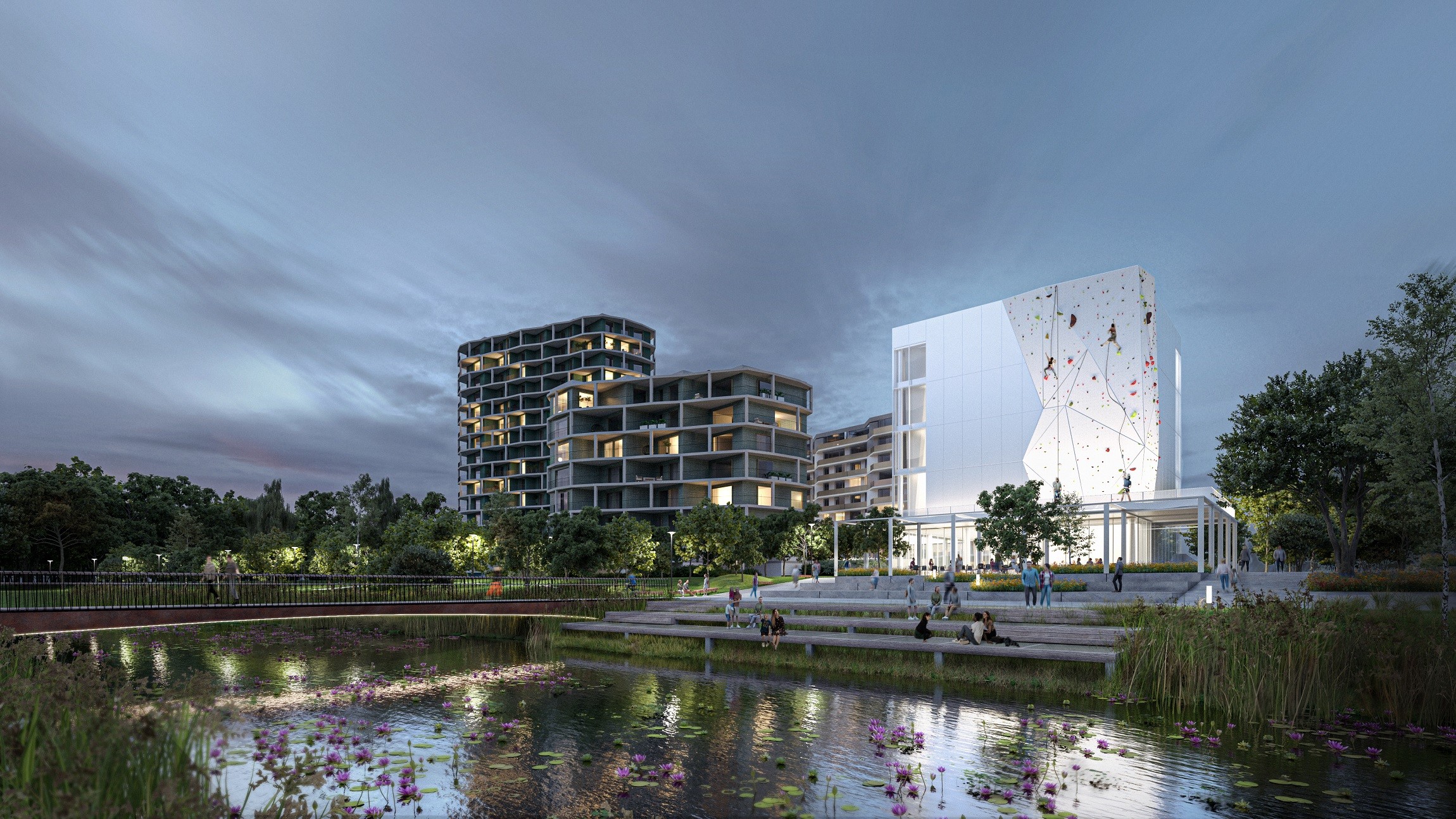 Má tu vyrásť aj športové horolezecké centrum s lezeckou stenou a kaviarňou. Budovy na bulvári pri električke budú 9-poschodové, za nimi je naplánované korzo. V druhom rade budú 7-, 14-, a 15-poschodové bodové domy. Park a parkovanie len pod zemou má dodať lokalite ráz centra.