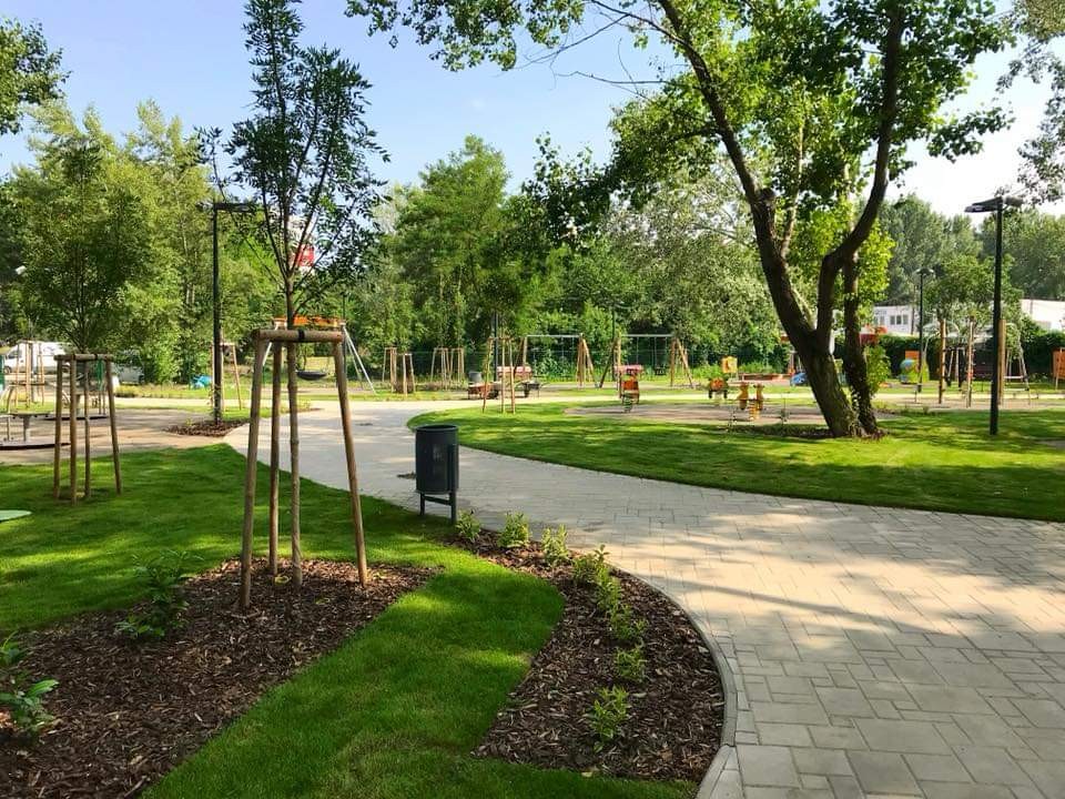 Investor zatiaľ vybudoval veľké detské ihrisko v aleji zelene a promenádny chodník.
