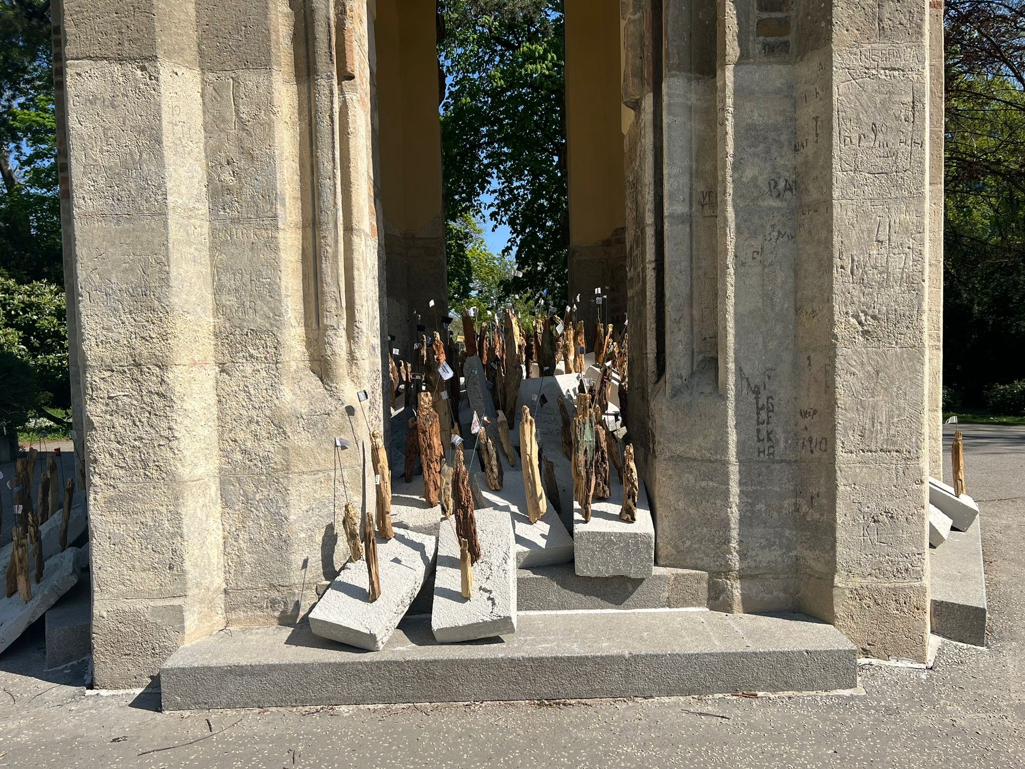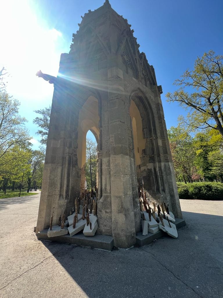Ak však v týchto dňoch budete parkom prechádzať, v časti gotickej veže narazíte na zvláštnu inštaláciu. Pod vežou sú polámané kvádre, v nich sú zapichnuté drevené koly a na nich vejú vlajočky. Ako nás informovali z magistrátu mesta, ktorý majú park vo svojej správe, ide o dočasnú site specific inštaláciu s názvom My sme umelca Jaroslava Beliša. Je umiestnená pod gotickou vežou uvidieť by ste ju tam mohli približne dva týždne, aj v závislosti od počasia. Autor dielo venoval obetiam vojny na Ukrajine, ako uviedol pre banoviny.sk, je vyjadrením solidarity s Ukrajinou, ale aj vyjadrením protestu proti nezmyselnej okupačnej vojne.