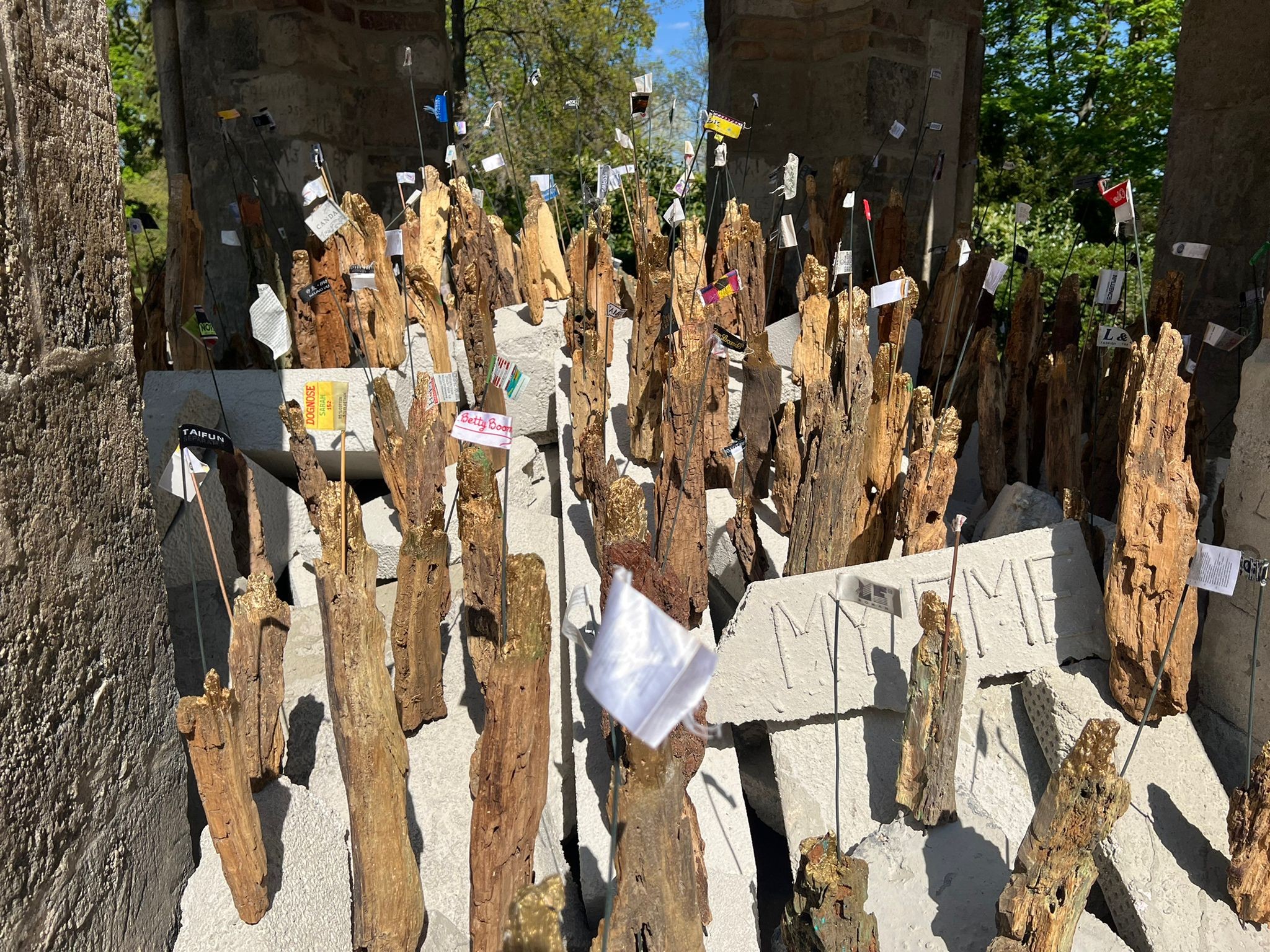 Ak sa v týchto dňoch vyberiete na prechádzku do Sadu Janka Kráľa, určite sa zastavte pri gotickej veži, kde narazíte na zvláštnu inštaláciu. Pod vežou sú polámané kvádre, v nich sú zapichnuté drevené koly a na nich vejú vlajočky. Autor diela nám vysvetlil, aká je myšlienka diela a komu ho venoval..
