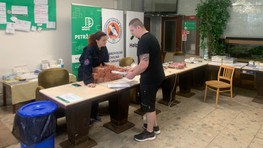 Stanislav Pešek ma víta vo vstupnej hale, ale hneď odbieha, pretože treba prebrať dar – párky a salámy od známeho predajcu mäsových výrobkov. „Mestská časť sa stará o obedy a večere, my hľadáme spôsoby, ako zabezpečiť raňajky,“ hovorí mi, keď sa vráti. Kontakty získalo združenie už počas pandémie, niečo nakupujú z vlastných financií, veľmi im pomáha aj platforma Kto pomôže Ukrajine. Vďaka tomu majú prichádzajúci jedlo a všetko nevyhnutné, aj keď dorazia až v noci.