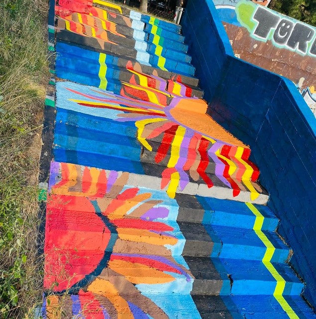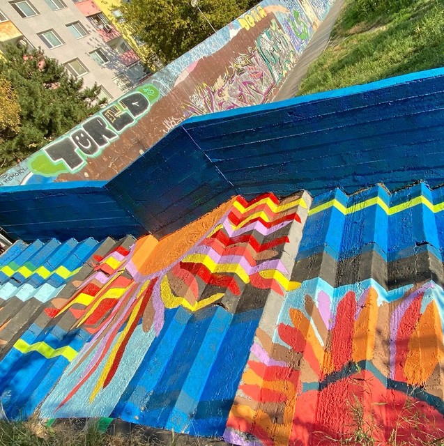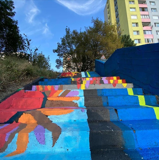 Schody zdobia farebné kvety na modrom a čiernom podklade. "Mala som v hlave množstvo motívov, no nakoniec som sa rozhodla pre kvety," uviedla doktorka. "Urobte si tiež fotku a pošlite známym či priateľom. Hlavne majte radosť, o to nám išlo," dodáva Plšeková