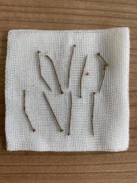 Deväť špendlíkov, ktoré vybrali Maxovi a Barrymu zo žalúdka.